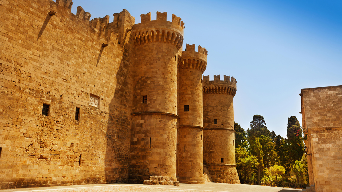 Perched at the top of the hill that overlooks the Old Town, it is this Castle that one sees first when reaching Rhodes from the Aegean or Mediterrranean sea.